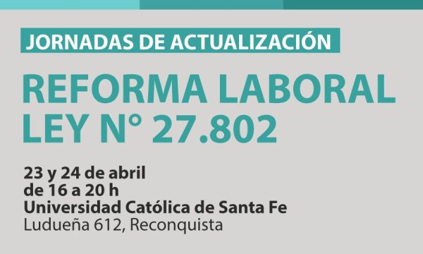 Hacemos extensiva esta invitación a las jornadas de actualización de Reforma Laboral los días 23 y 24 de abril Horario: de 16 a 20 h Lugar: Universidad Católica de Santa Fe (LudueñaLeer más...