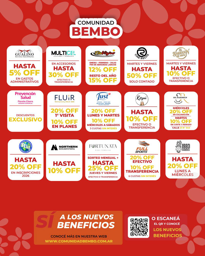 Con el Programa Comunidad Bembo los asociados del CICA tienen un 5% de descuento en Supermercados Bembo, y ahora también NUEVOS BENEFICIOS en otros rubros ¡Asociate, comunícate y solicitá adhesión a esta Comunidad!